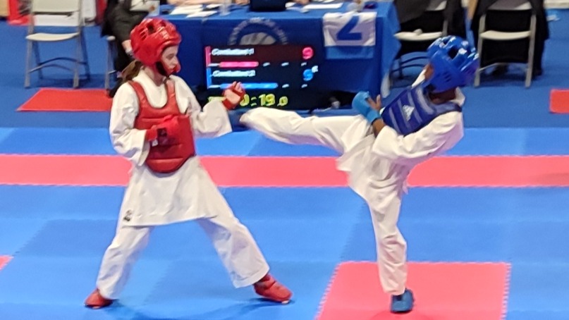 Emilien, Eric, Joyce, Ibrahim, Karlina, Levon et Mariette étaient sur les tatamis au Championnat de Ligue Kumité (Minimes, Cadets, Juniors, Séniors et Vétérans) et à l’Open de Ligue Kumité (Pupilles & Benjamins), organisés au Hall des Sports de Saint-Jean-de-Braye (Loiret) les 7 et 8 février 2026.