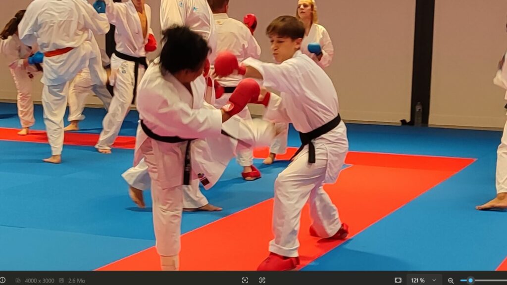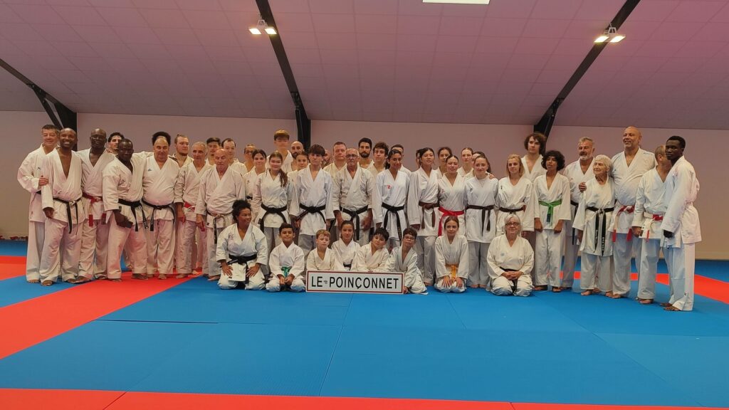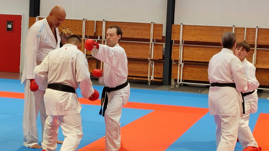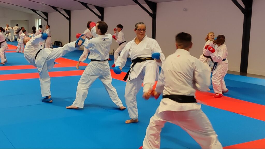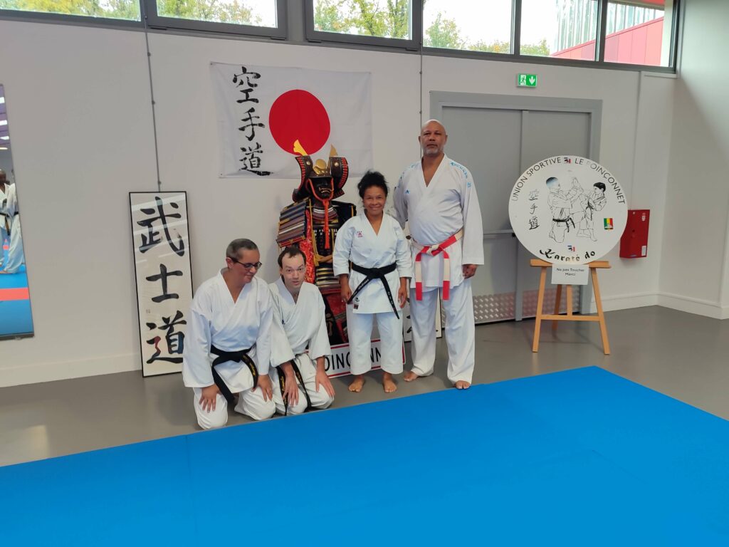 Marc, Maryem, Nivo et Pierre parmi la cinquantaine de karatékas présents au dojo du Poinçonnet (Indre), dimanche 21 septembre 2025.