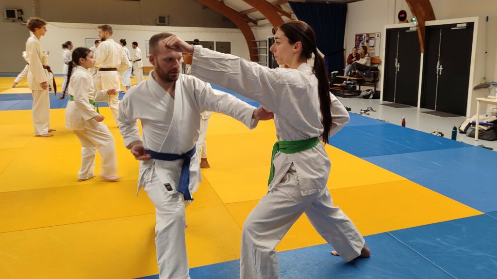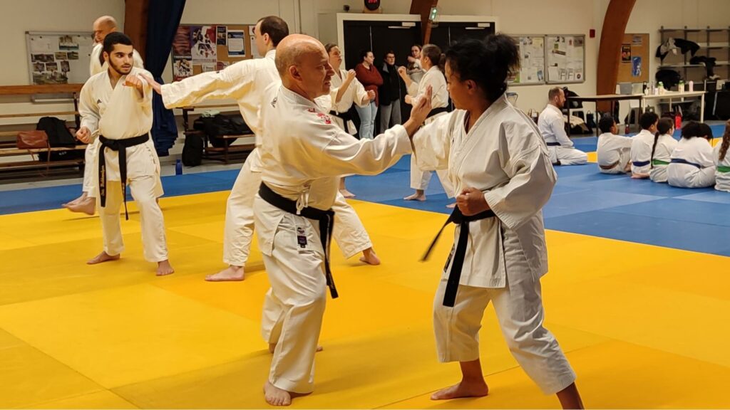 Dans le cadre de la campagne du Téléthon 2025, le CDK 45 a organisé un stage départemental « Approfondissement Kihon – Kihon Ippon Kumité – Ippon Kumité », animé par Fabien Poullin, Responsable Départemental des Grades, et Sébastien Troispoux, Directeur Technique Départemental. Déborah, Éric, Nivo et Pierre faisaient partie de la trentaine de karatékas présents sur le tatami au Dojo de La Vannoise à Olivet (Loiret), le 5 décembre.